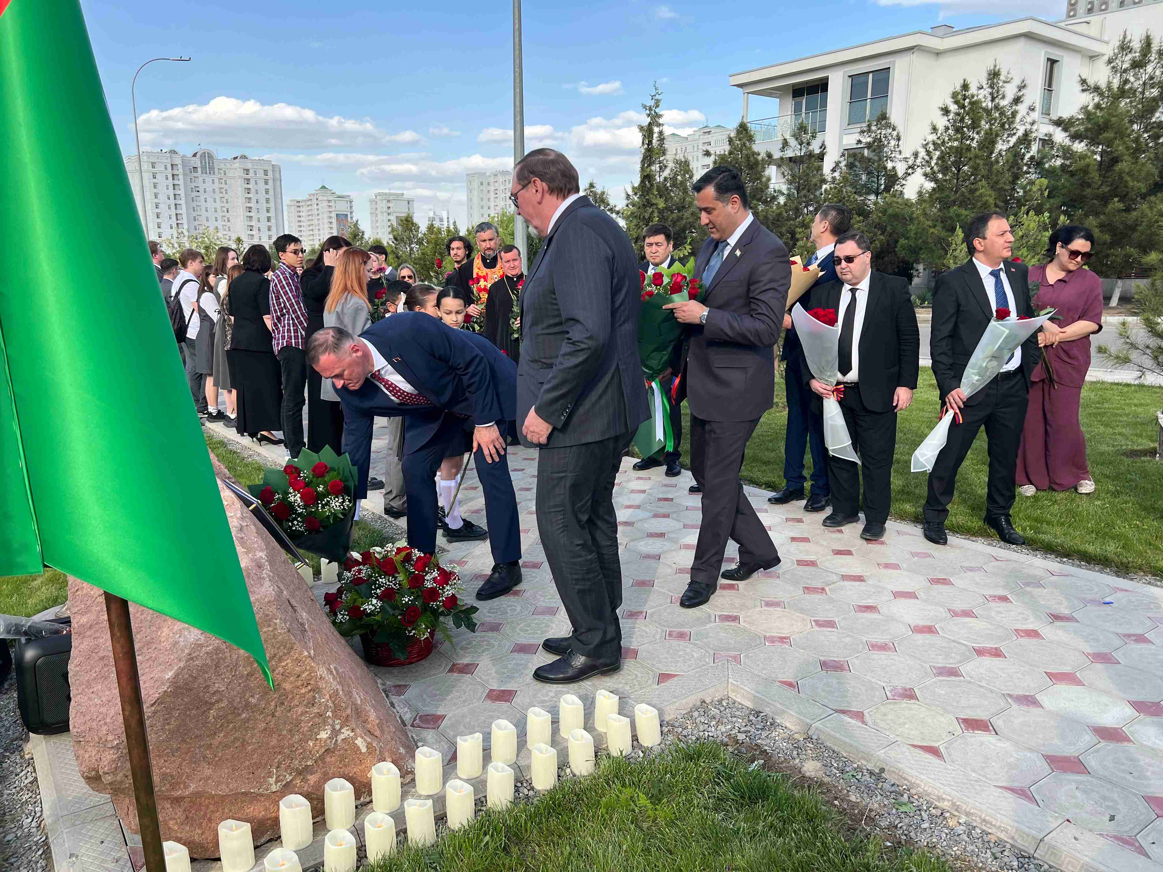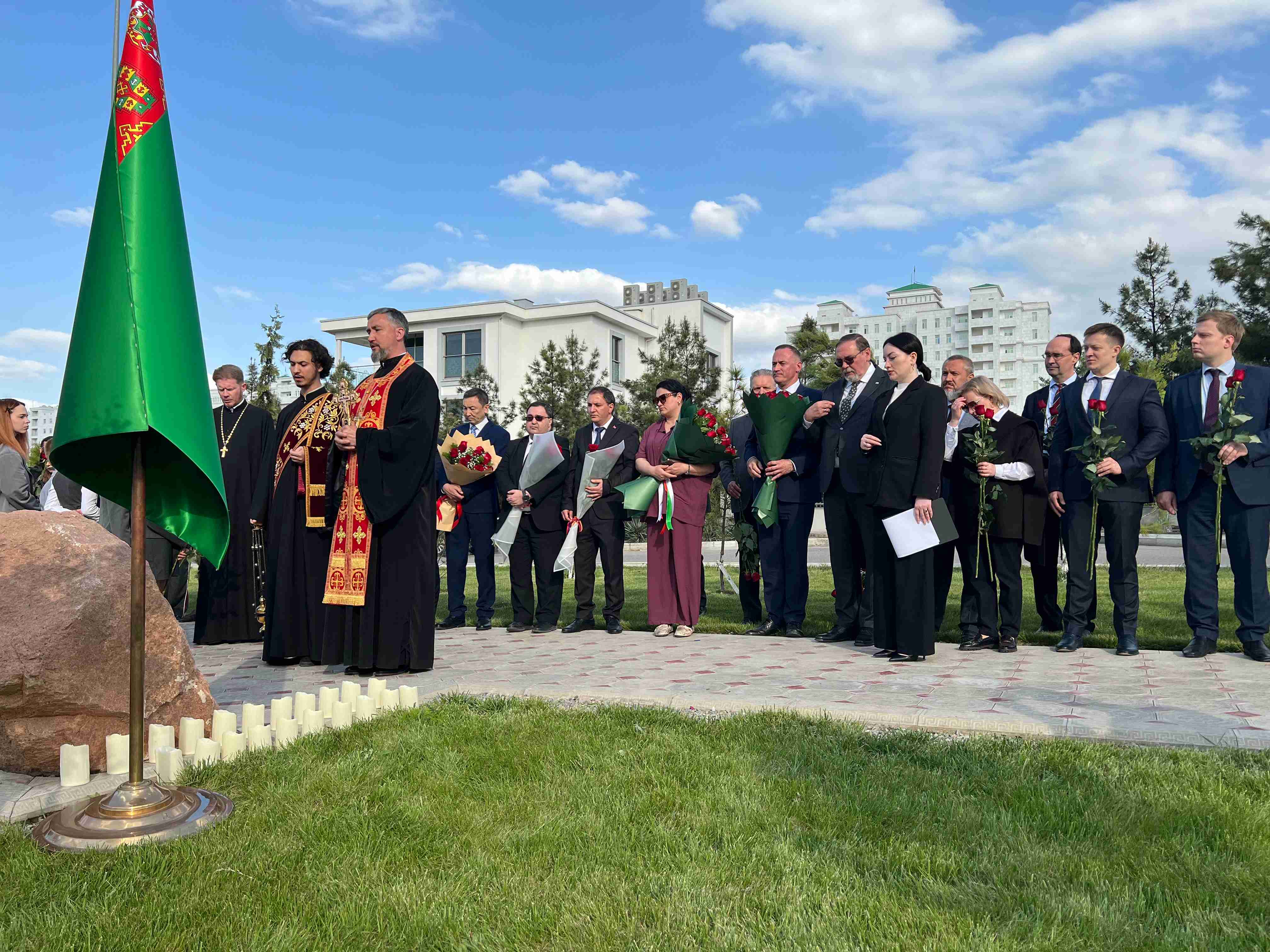 18.04.2026 г. 17 апреля 2026 г. Чрезвычайный и Полномочный Посол Республики Беларусь в Туркменистане Станислав Чепурной и сотрудники Посольства приняли участие в траурном митинге посвященном памяти жертв геноцида советского народа в годы Великой Отечественной войны.